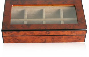 Elegance at its finest, this 8-pair box screams quality. Large viewing window allows cufflinks aficionado to view contents before retrieving his favorite pair. This box snaps close with a "thud", which echos the quality. This one features a plush velvet interior and velvet lined bottom protects your dresser from any scratches. Elm burl design is a print (but you'd never no it) with high lacquer finish. This is an unbelievable value that can't be beat. A great gift idea. (Cufflinks not included.) Cufflinks box arrives in a white cardboard box so all you need is wrapping paper to gift. Covered by Cuff-Daddy's low price guarantee. Cuff-Daddy's Lifetime product guarantee applies to these and all of our products