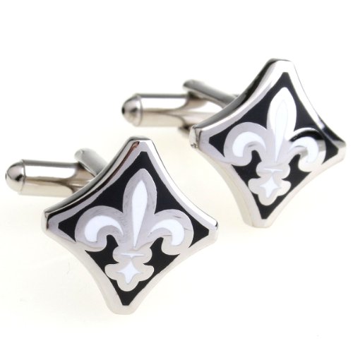 Perfectly sized, these fleur di lis cufflinks are crafted in black and white and have a silver-tone-silver setting. Very classy. We carry the same product in blue.Technical Details
