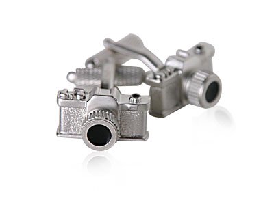 Unique camera cufflinks with a zoom lens filled with black enamel set in rhodium, silver mount. Conservative enough for the office; but far from boring. Each cufflink is a miniature camera and a BIG conversation piece. Pair with any classic shirt and pull out similar or complementary hues in a shirt or tie. Each pair is finished by hand to ensure a quality; lasting pair. They measure approximately 3/4" x 3/8". Nice heavy feel speaks to their quality. Set in rhodium silver frame so it never needs polishing. Covered by Cuff-Daddy's Lifetime product guarantee. Great for wedding parties! ...Read more |